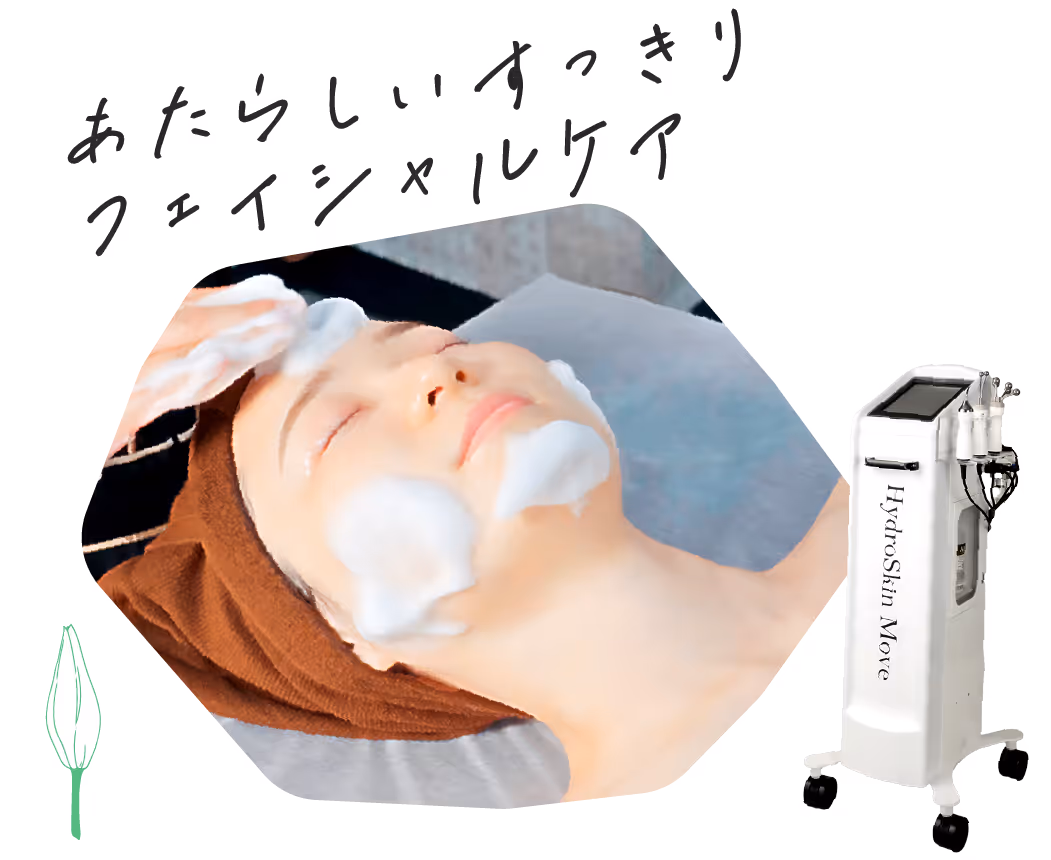 毛穴洗浄とたるみ改善も特化したフェイシャルメニュー。HYDRO(毛穴洗浄)による艶肌、J-PEEL(角質除去)による美肌、EMS(電気刺激)の筋力アップでたるみ改善、EP(エレクトロポレーション)で美容成分導入。