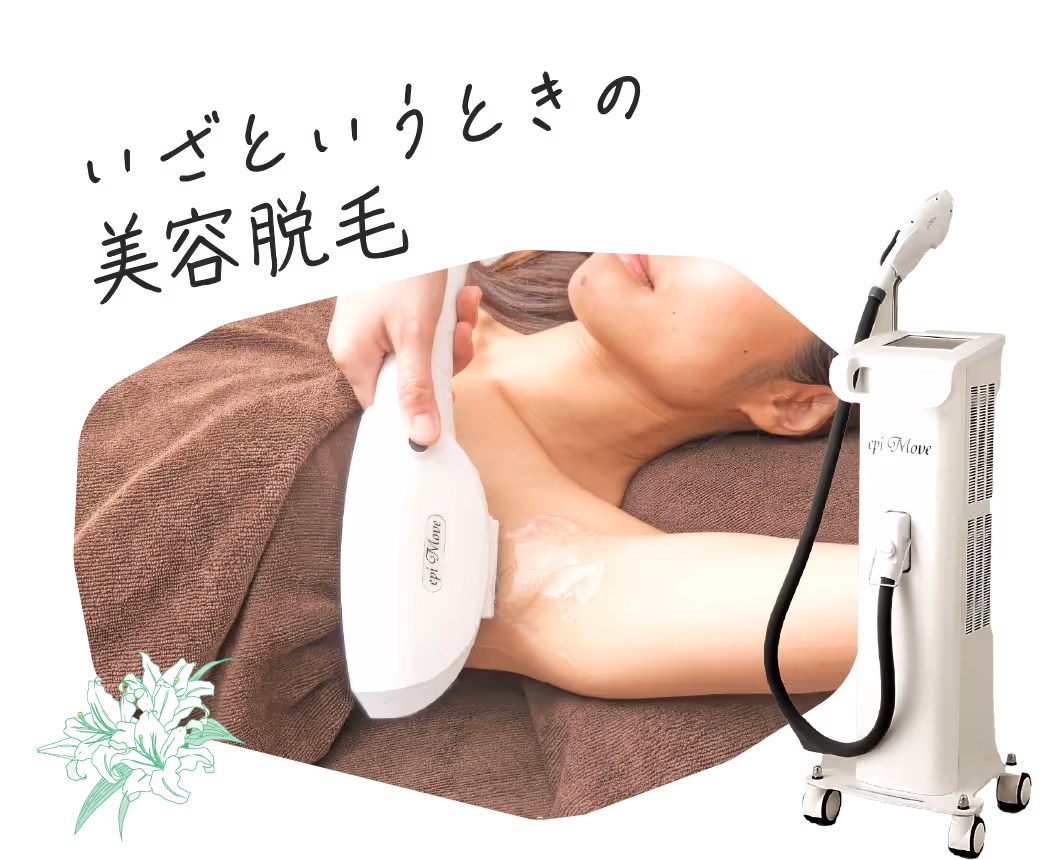 epiMove®(エピムーブ)で痛みを抑えながら美容脱毛。照射する光が肌の奥にまで働きかけ、毛穴の引き締めや黒ずみの軽減にも効果が期待できます。